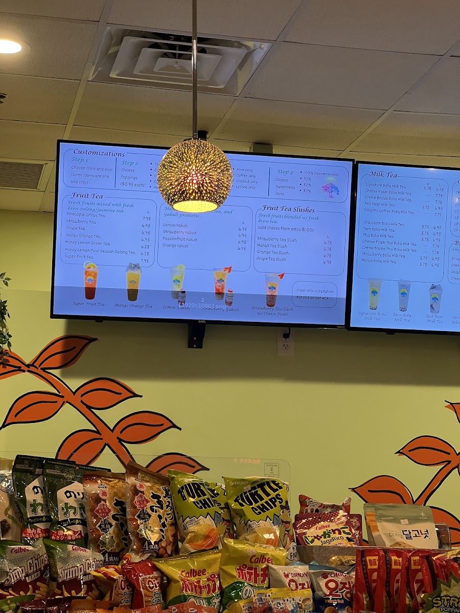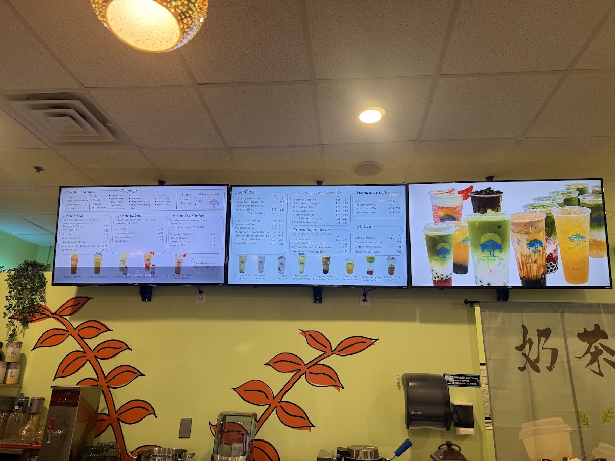 Fortune Tea House offers a diverse and tempting selection of drinks, catering to various tastes with their unique milk teas, refreshing fruit tea slushes, and soothing tea options. The Signature Boba Milk Tea is a standout classic, while the Cheese Foam Boba Milk Tea provides a creamy twist, and the indulgent Creme Brulee Boba Milk Tea promises a rich flavor experience. For those who prefer something a bit different, the Red Bean Milk Tea and the trendy Dalgona Coffee Boba Milk Tea are also excellent choices. The fruit tea slushes are perfect for a refreshing treat, with options like Strawberry Tea Slush, Mango Tea Slush, and Orange Tea Slush, alongside the vibrant Grape Tea Slush. If you're in the mood for a lighter, non-slush option, their regular tea offerings include refreshing choices such as Strawberry Tea, Grape Tea, and Mango Orange Tea. For those who enjoy a blend of honey and tea, the Honey Lemon Green Tea and Honey Lemon Four Season Oolong Tea are excellent options to round out the menu. With a variety of flavors to choose from, Fortune Tea House is sure to satisfy your cravings, whether you're in the mood for something creamy, fruity, or soothing.